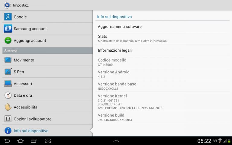 Questa mattina è stato rilasciato un nuovo aggiornamento firmware per il Samsung Galaxy Note 10.1 no brand Italia (GT-N8000).