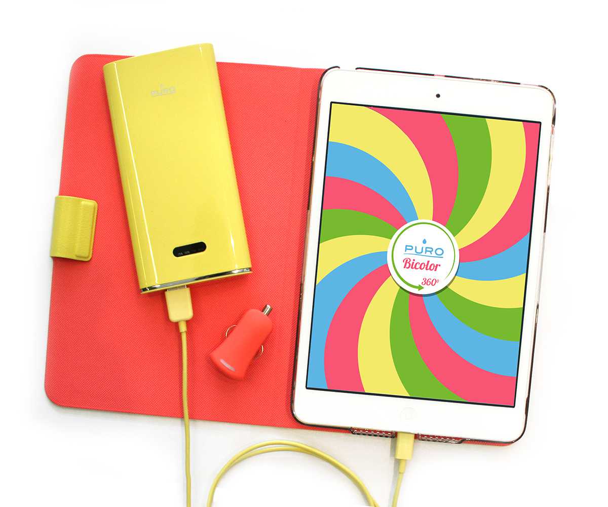 Basta poco per colorare la vacanza: Booklet Bicolor 360° per proteggere il vostro iPad Air e iPad Mini Retina con le cromie rilassanti del verde, rosa, giallo e blu, da abbinare alle Power Bank di Puro per non restare scarichi neanche un minuto. Senza bisogno di una presa di corrente, l’energia è già nelle vostre mani e ha i colori dell’estate!