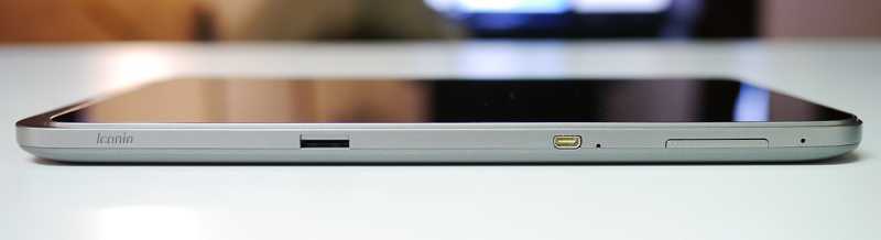L’aspetto del tablet si presenta molto elegante con una scocca di alluminio spazzolato e angolo arrotondati che lo rendono anche facile da maneggiare. La fotocamera posteriore è affogata nella back cover e non sporge garantendo il massimo confort quando si utilizza il dispositivo. Sul posteriore troviamo il badge con il logo windows e il badge Intel.