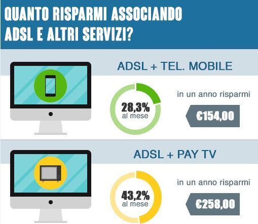 In questi casi, queste tipologie di offerte, attualmente sono le più convenienti e secondo alcuni studi condotti da SosTariffe, potremmo arrivare a risparmi mensili compresi tra 6,6% e il 43,2%. Il noto sito di comparazioni tariffe mostra come un’offerta ADSL + Telefonia mobile arriva ad un risparmio fino a circa 28,3% sull’attivazione singola dei servizi.