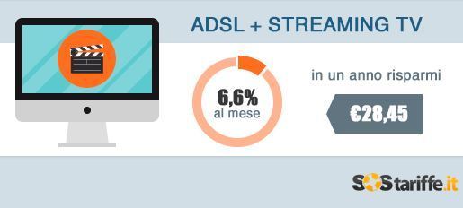 Invece se si pensa ad un abbonamento di ADSL + Pay TV lo sconto applicato mensile arriva fino al 43%. Ben al di sotto lo sconto su ADSL e Streaming TV che rimane intorno al 6.6% per poi azzerarsi quasi nell’anno successivo alla sottoscrizione.