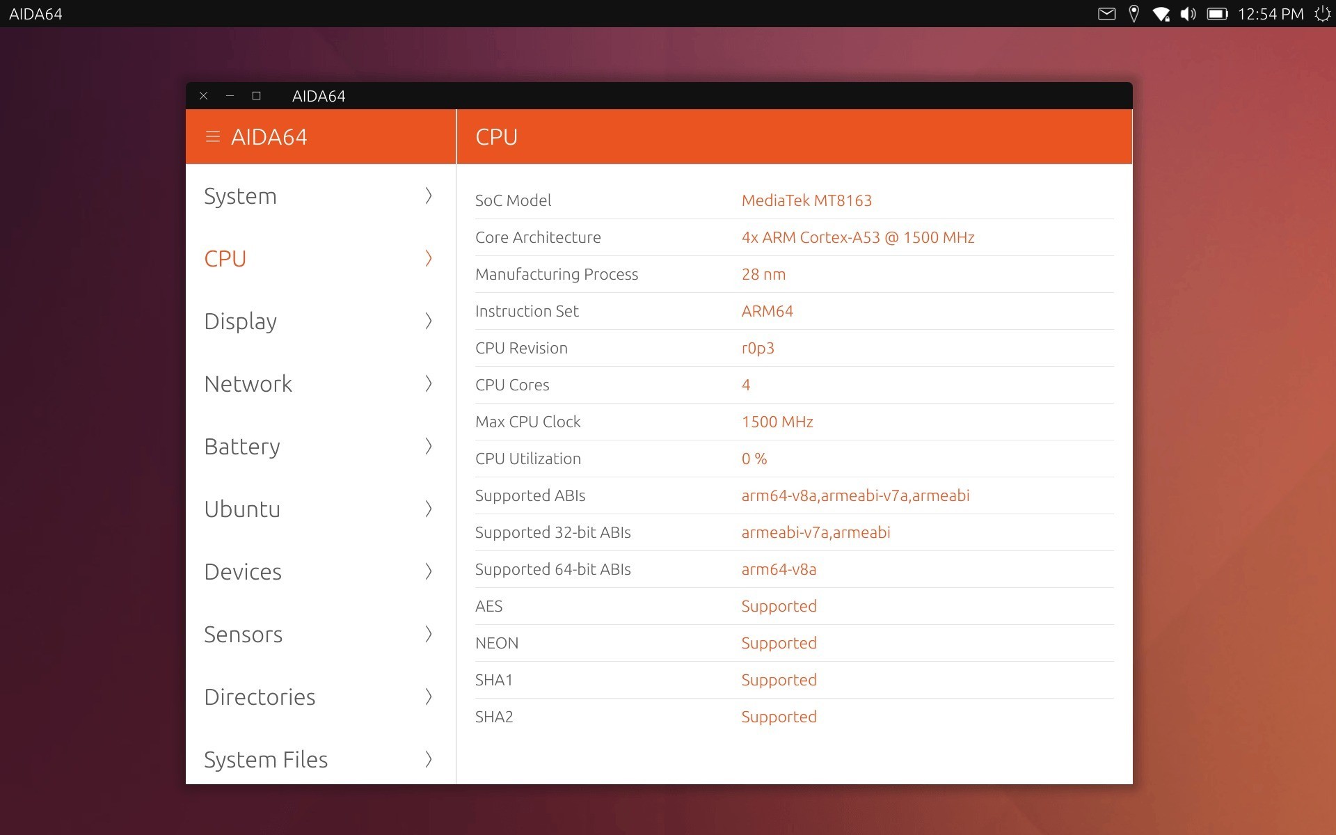 AIDA64 è stato inoltre rilasciato per una nuova piattaforma mobile, Ubuntu Touch. Questa versione include la maggior parte delle funzionalità che possiamo trovare nella versione di AIDA64 per Android, ed inoltre supporta pienamente la funzionalità Convergence di Ubuntu: questa è capace di adattare dinamicamente l’interfaccia utente in base al display utilizzato o alla periferica di input connessa.