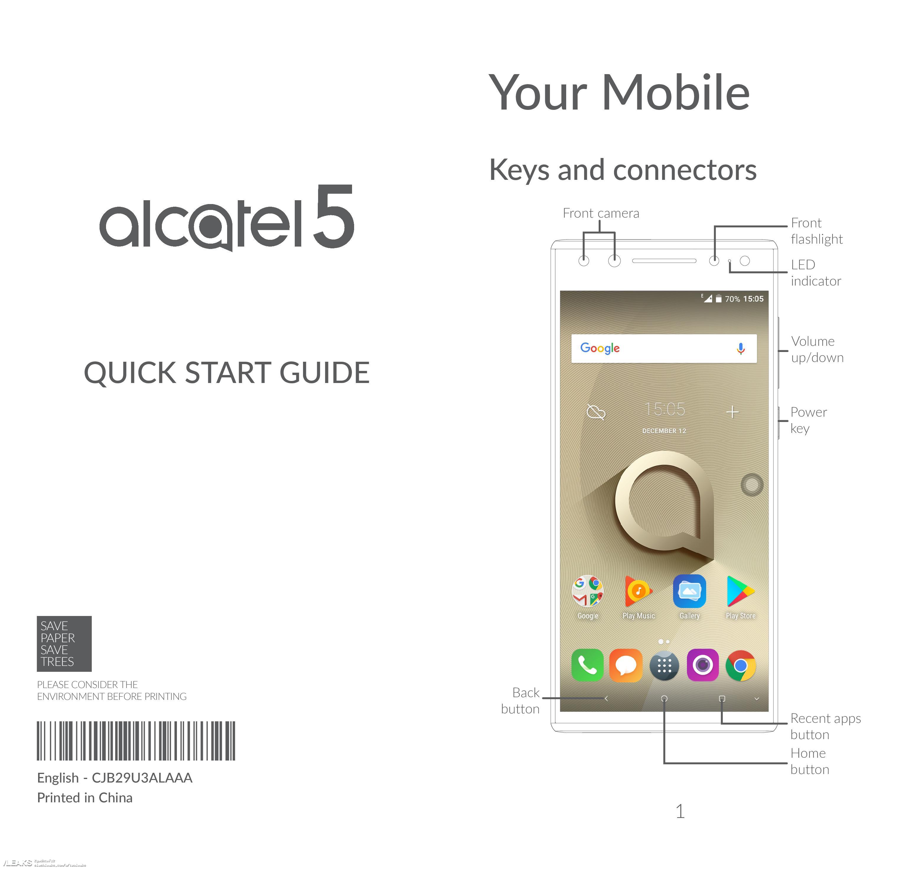 Home Android Alcatel 5: immagini e manuale utente del dispositivo