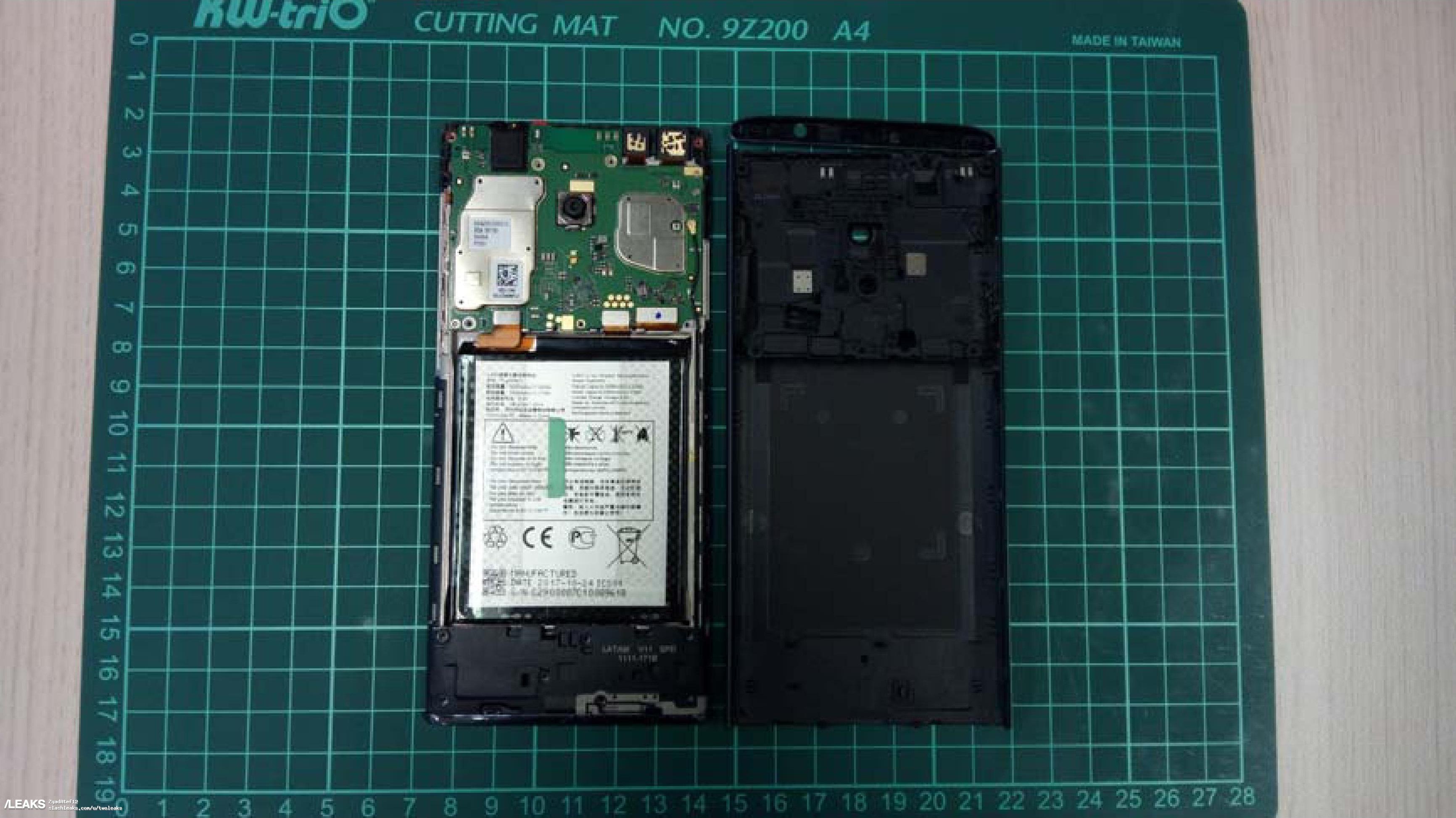 Il dispositivo mostrato di seguito sembrerebbe essere realizzato con ottimi materiali. L’ottimizzazione generale delle cornici è sicuramente buona, anche se la cornice superiore sembrerebbe essere comunque troppo spessa. Il pannello avrebbe una dimensione di 5,7″ in formato 18:9.