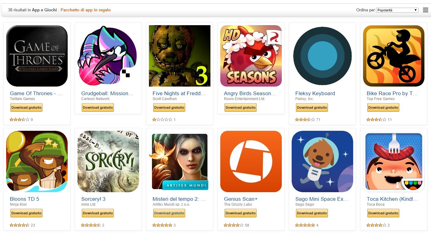 Nonostante il Play Store di Google sia il negozio virtuale più utilizzato nel mondo Android, esistono diversi store alternativi che consentono di usufruire di promozioni ed esclusive. Tra questi, Amazon App Shop si differenzia dai concorrenti soprattutto per le promozioni e le offerte che, quotidianamente od in determinati periodi dell’anno, consentono di scaricare giochi ed app a prezzi concorrenziali od addirittura gratuitamente. E proprio da alcuni giorni Amazon ha lanciato la nuova promozione “100€ di app e giochi offerti gratuitamente” che consente di scaricare decine di applicazioni e giochi per un valore complessivo di 100€.