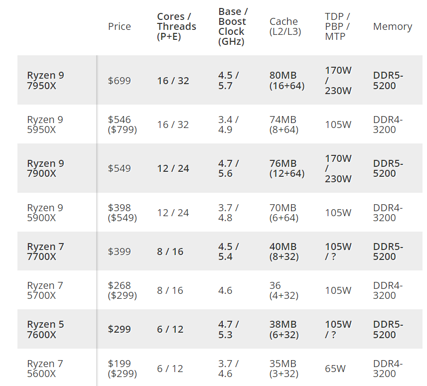 AMD ha presentato la sua gamma Ryzen 7000 a 5 nm, delineando i dettagli di quattro nuovi modelli che vanno dall’ammiraglia Ryzen 9 7950X a 16 core da 699 dollari, che AMD afferma essere la CPU più veloce al mondo, al Ryzen 5 7600X a sei core da 299 dollari, la barra più bassa di ingresso alla prima famiglia di processori Zen 4.
