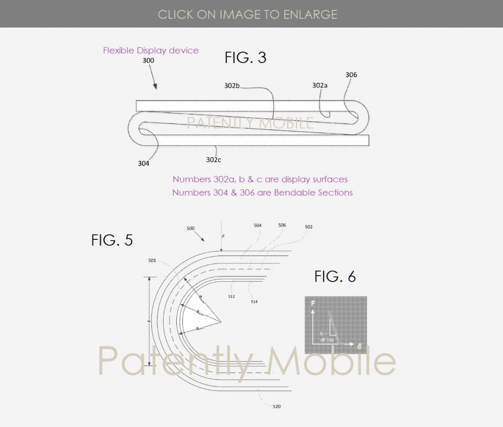 Avevamo già parlato qualche giorno fa del brevetto presentato da Google, e effettivamente non ci sono molte novità al riguardo, Dal disegno possiamo vedere due ipotetiche tipologie di smartphone pieghevole, una con chiusura verticale, cole avveniva tempo fa con i dispositivi a conchiglia, ma in questo caso con dimensioni più generose, e un secondo modello con chiusura a doppia piegatura, diviso in tre parti come fosse un dépliant.