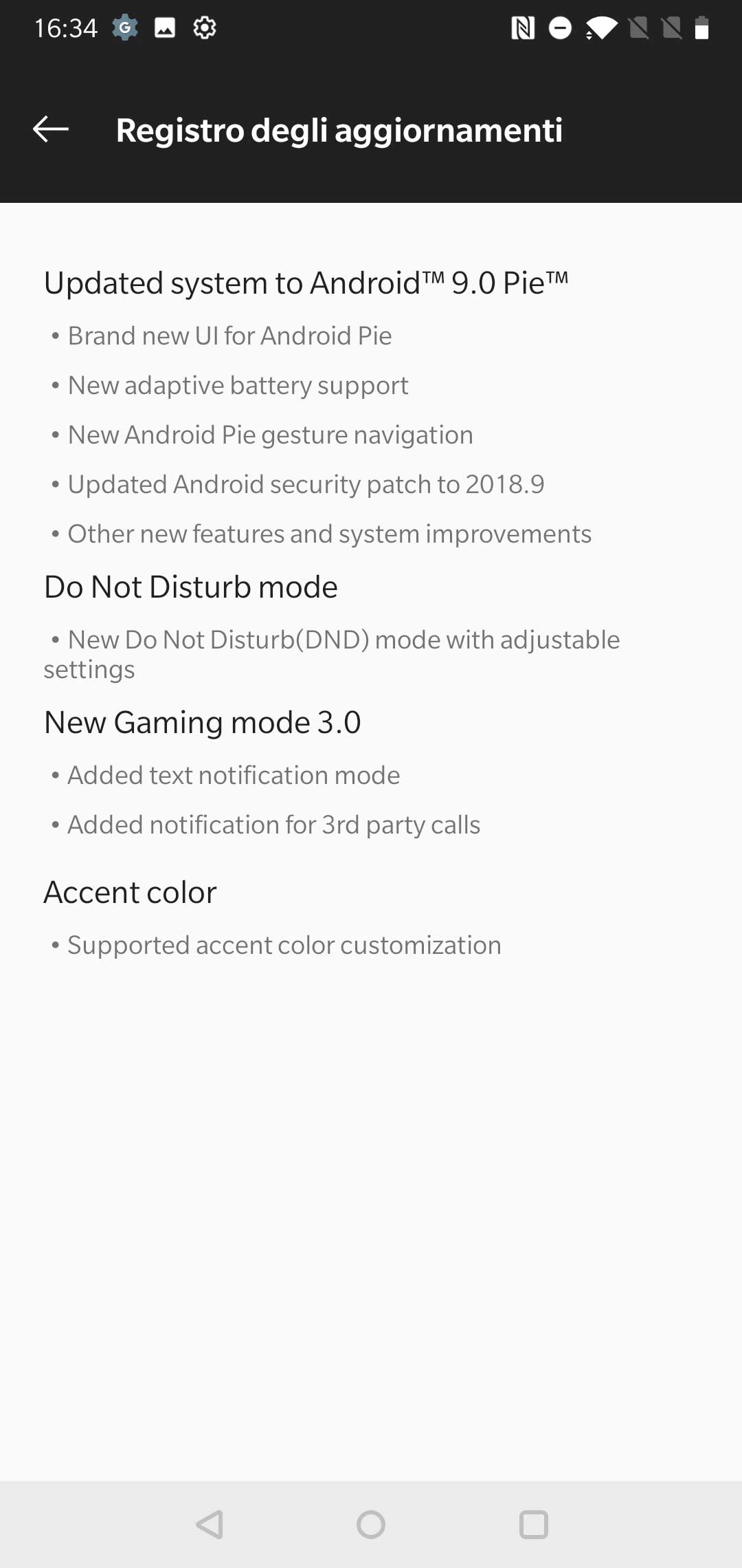 • Aggiornamento di sistema ad Android 9.0 Pie