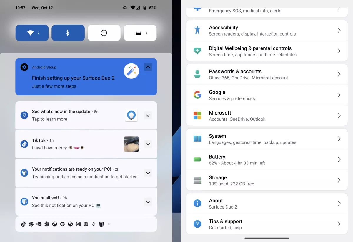 Microsoft ha svelato le prime immagini della prossima versione di Android 12L per Surface Duo, che presenta un nuovo design che ricorda più il linguaggio di progettazione Fluent di Windows 11.