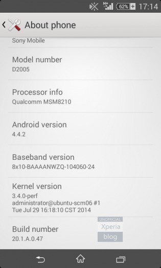 Ecco il changelog completo del nuovo firmware 20.1.A.0.47 per Sony Xperia E1: