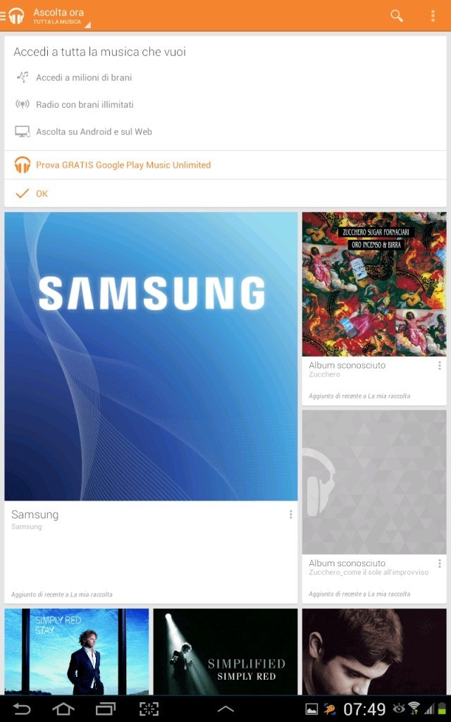 Google Play Music All Access può essere attivato fin da subito attraverso l’applicazione Google Play Music direttamente dal tablet o dallo smartphone selezionando la voce Music Unlimited ed in via promozionale verrà attivato un abbonamento di prova gratuita della durata di 30 giorni al termine dei quali potrete decidere se procedere con l’abbonamento da 7.99€ al mese o disdire il tutto.