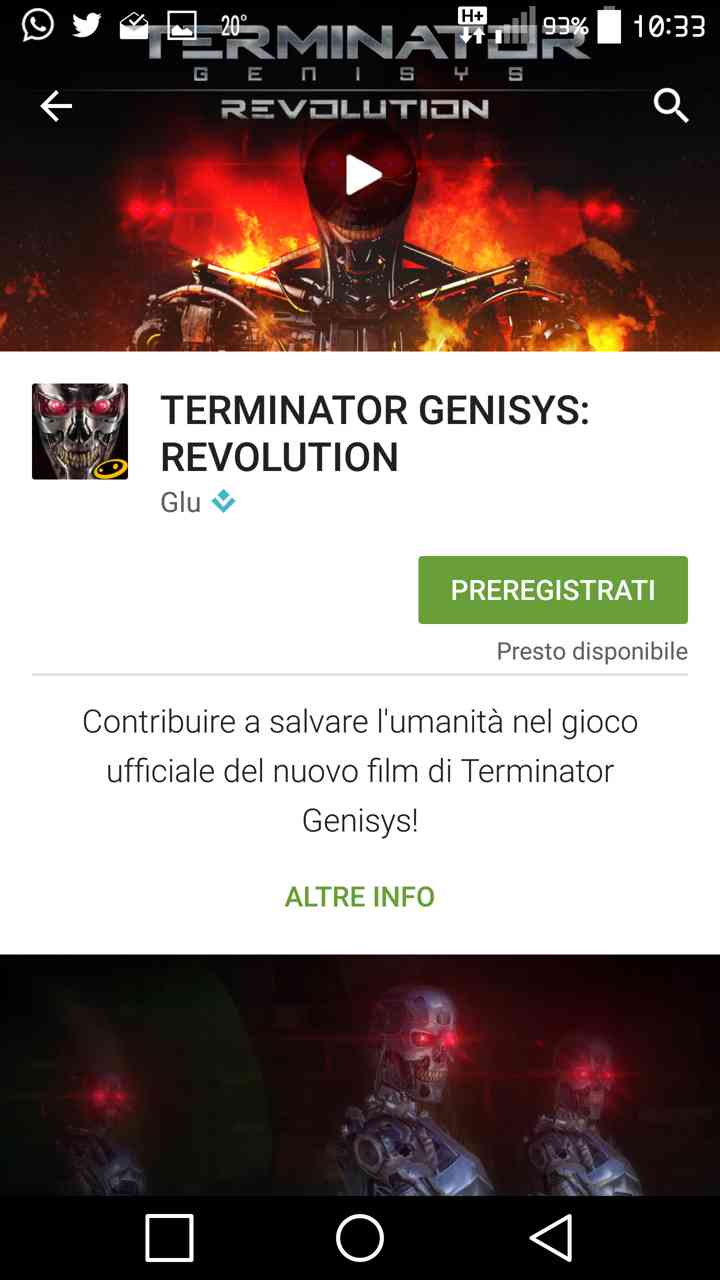 Tutte le applicazioni prossime all’uscita, permetteranno agli utenti di pre-registrarsi ed essere così avvisati con un apposito avviso che ne notificherà l’effettivo rilascio definitivo. Un esempio concreto è già attivo sul gioco Terminator Genisys: Revolution che permette appunto allo sviluppatore di farsi pubblicità in anticipo e all’utente di sapere quando effettivamente verrà rilasciato. Il prezzo ovviamente non è un dettaglio che si potrà sapere subito, ma essere avvisati è già qualcosa, non credete?