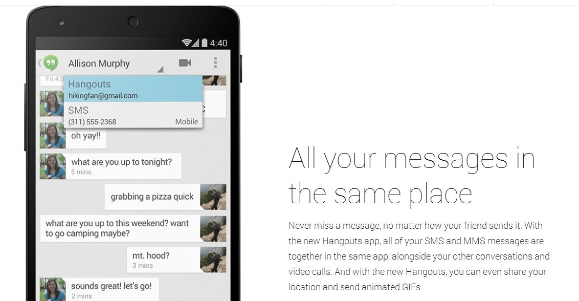 Era nell’aria ed è stata confermata la possibilità di gestire il comparto messaggistica in un’unica applicazione, compresi SMS ed MMS. Si era parlato della possibilità di un potenziamento di Hangouts con la gestione anche degli SMS. Bene, con Android 4.4 è possibile: Hangouts 2.0 è funzionante e già presente nel Nexus 5. Inoltre è stato reso disponibile al download dell’apk anche per altri dispositivi. Noi l’abbiamo già testato e ne siamo davvero entusiasti. Ricapitolando, Hangouts 2.0 gestirà tutti gli SMS ed MMS insieme alle altre conversazioni e videochiamate. Inoltre, l’app consentirà di condividere la propria posizione geografica e inviare GIF animate.