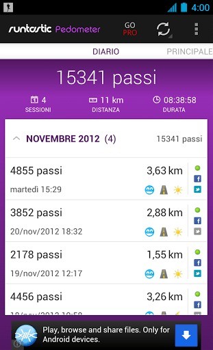 Runtastic Pedometer Pro permette, tenendo semplicemente lo smartphone in tasca, di calcolare con precisione i passi fatti durante la giornata.