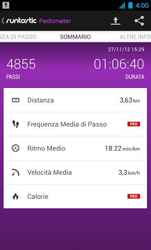 Ecco alcune delle caratteristiche di Runtastic Pedometer Pro: