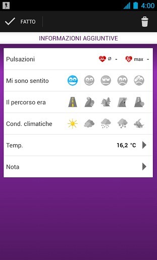 - Se lo desideri potrai anche registrare i tuoi dati personali quali peso e altezza, essenziali per un calcolo accurato delle calorie consumate