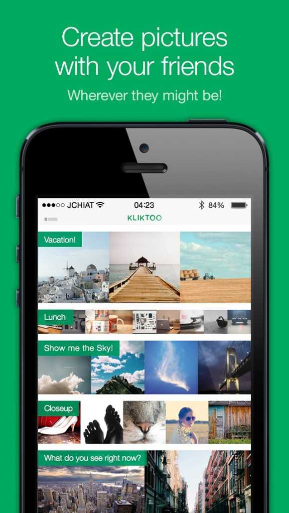 KilkToo e un’applicazione gratuita per i dispositivi iOS che consente di combinare i vostri scatti fotografici con gli scatti effettuati dagli amici, ovunque siano, creandone una foto unica.