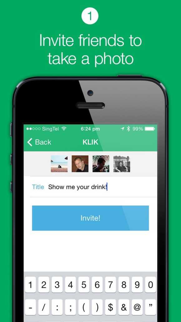 Inizi con l’invitare i tuoi amici a farsi una foto, successivamente , KlikToo combina tutte le foto che hai scattato sia tu che i tuoi amici per creare una foto unica, identificata da ora e luogo in cui è stata scattata ogni singola fotografia”.
