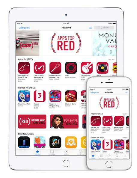 Tra le tante Apps for (RED), con contenuti esclusivi limitati nel tempo, potremo trovare: Angy Birds, Bubble Witch 2 Saga, Clash of Clans, Cattivissimo me: Minion Rush, FarmVille 2, FIFA 15 Ultimate Team, Sims FreePlay, Rayman Fiesta Run.