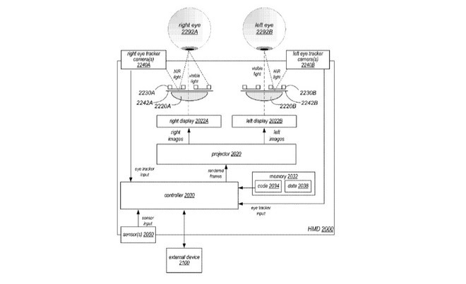 Parliamo di un nuovo brevetto depositato dalla stessa Apple, in cui si fa riferimento ad un sistema di tracciamento degli occhi. In particolare si tratterebbe di una tecnologia in grado di registrare i movimenti dell’occhio sfruttando la rifrazione della luce IR attraverso due micro telecamere installate lateralmente.