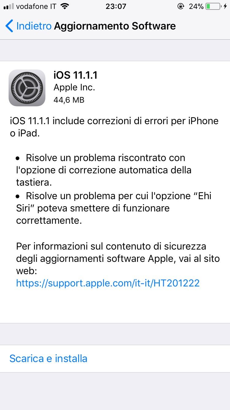 iOS 11.1.1 include correzioni di errori per iPhone o iPad.