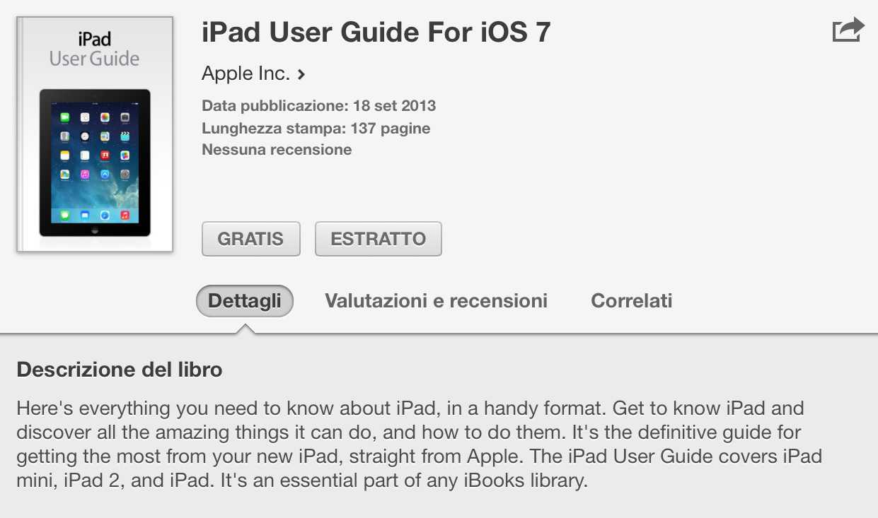 Il manuale contiene informazioni sulle nuove funzionalità come il Game Center, Airdrop, oltre a spiegare come utilizzare al meglio la nuova interfaccia utente completamente rivisitata. Per il momento questo manuale è disponibile solo per iPad e iPod Touch. Qui trovate tutte le novità di iOS7.