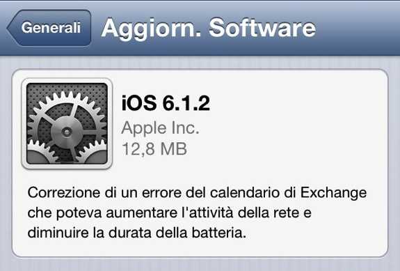 L’aggiornamento ad iOS 6.1.2 è disponibile per tutti i device che supportano iOS 6. E’ possibile procedere all’aggiornamento via OTA andando in Impostazioni -> Generali -> Aggiornamento Software oltre ovviamente che tramite iTunes.