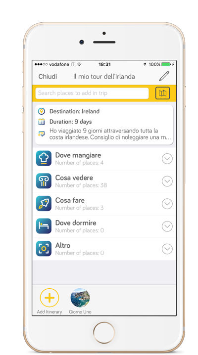 Nel proprio profilo personale è anche possibile creare il proprio viaggio. Semplicemente indicando i luoghi che si vorrebbero visitare nei giorni di vacanza, Eupolia sarà in grado di suggerire l’itinerario più veloce per vedere i posti selezionati.
