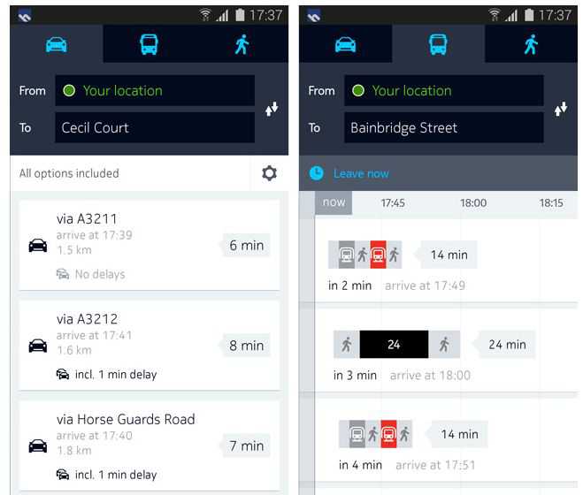 Durante la pianificazione del percorso, sarà possibile scegliere diverse tra diverse opzioni messe a disposizione dall’applicazione, come la scelta del mezzo utilizzato (automobile, mezzo pubblico, a piedi), scelta delle tappe di intermezzo, strada più veloce e molto altro ancora.