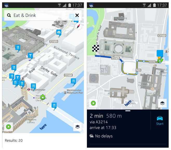 Nokia HERE per Android, grazie alla partnership stipulata con Samsung, sarà disponibile (almeno inizialmente) solo per dispositivi della famiglia Galaxy e sul nuovo smartwatch Gear S, dove sarà possibile ricevere informazioni direttamente sul display.