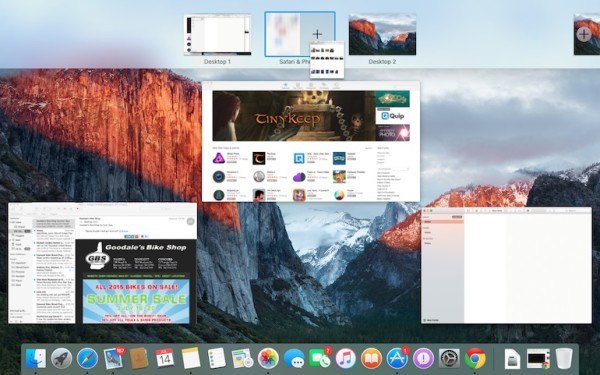Rimane più o meno identico l’aspetto esteriore con il classico look & feel minimalistico già visto su Yosemite ma con l’aggiunta di un font di sistema ridisegnato. Niente di particolarmente rilevante quindi, se non in dei piccoli dettagli. Fra le modifiche immediatamente visibili l’introduzione di una funzionalità “Find My Cursor” che fa esattamente quello che il suo nome promette: se per caso non riusciste a ritrovare il cursore sullo schermo (?) è sufficiente agire sul trackpad strofinando le dita avanti e indietro affinché il cursore diventi abbastanza grande da essere visibile. Fra le funzionalità più evidenti e attese, compare lo split screen, ovvero la possibilità di utilizzare più applicazioni affiancate agganciandole ai bordi dello schermo: anche in questo caso però, nessuna inedita novità. Si tratta infatti, di una funzionalità già vista sia dagli utenti Windows sia dagli utenti Apple sui sistemi mobile. In ogni caso si tratta di una miglioria importante che allinea OS X agli altri sistemi operativi disponibili sul mercato.