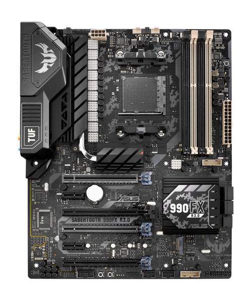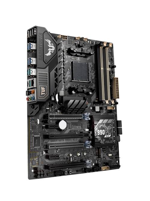 ASUS TUF Sabertooth 990FX R3.0 è la nuova scheda madre ATX con un esclusivo design camouflage ed il primo modello della serie TUF ad incorporare l’esclusivo sistema di illuminazione LED ASUS Aura. Basata sul chipset AMD 990FX/SB950 e compatibile con i processori per socket AMD AM3+, la scheda madre è dotata di SafeSlot, uno connettore PCI Express (PCIe) rinforzato, creato da ASUS (in attesa di brevetto) e di indicatori Q-LED ben visibili che consentono una semplice analisi dei componenti durante il processo di avvio.