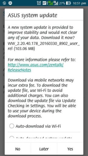 La versione del firmware di Zenfone 2 ZE551ML passa dalla 2.20.40.174 alla 2.20.40.178 ed ha un peso di 103 MB e nonostante un changelog piuttosto scarno, dovrebbe apportare diversi miglioramenti alla stabilità del dispositivo, così come riscontrato dagli utenti d’oltreoceano che hanno già avuto modo di provarlo in queste ore.