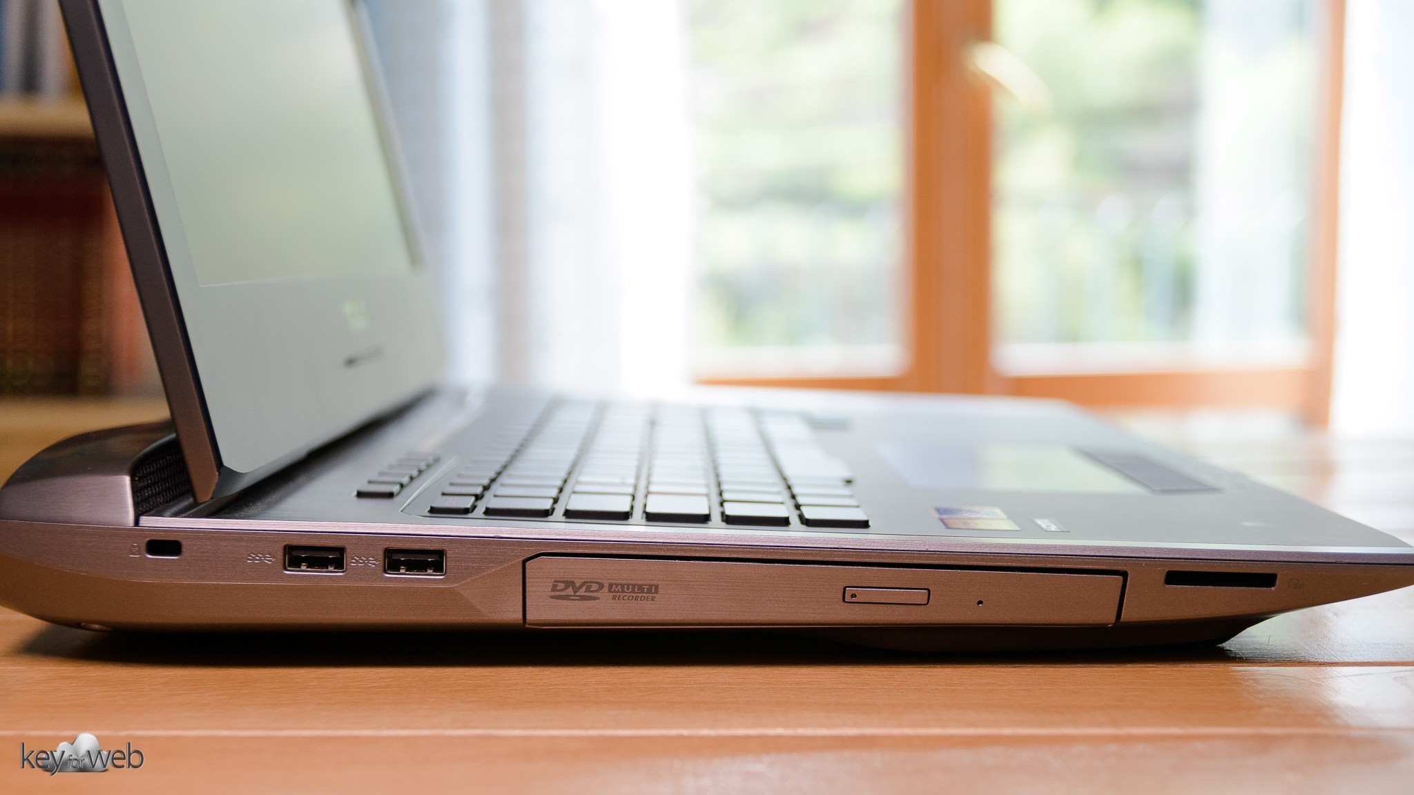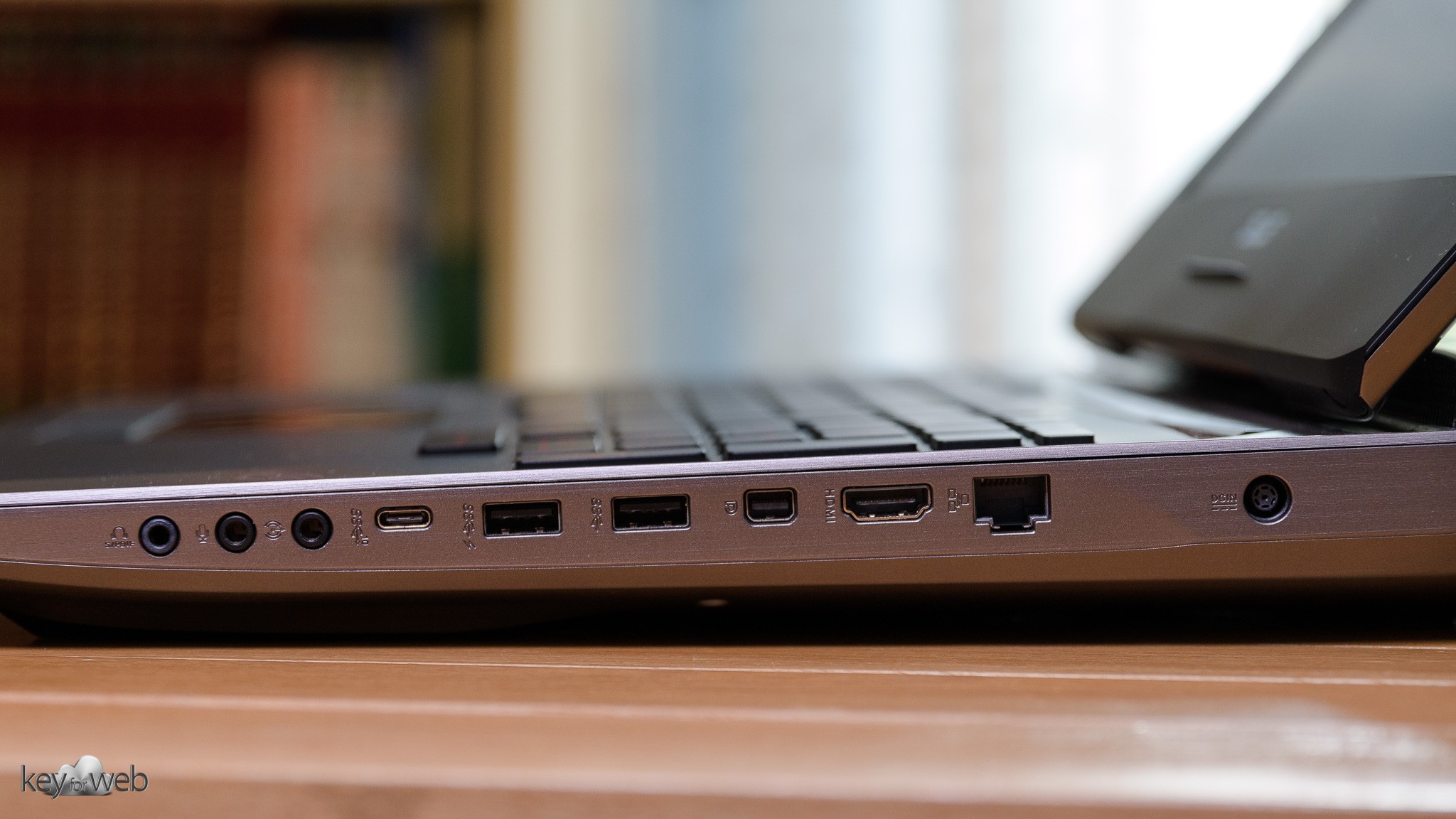 La dotazione di periferiche è molto ampia; sulla parte sinistra troviamo due porte USB 3.0, il lettore DVD Dual Layer ed un lettore per schede SD; parte bassa completamente pulita che presenta solo un piccolo led di stato; a destra troviamo 3 Jack Audio da 3.5mm (IN + OUT + S/PDIF), una porta USB Type-C 3.1 thunderbolt, altre due porte USB 3.0, uscita video tramite MINI Display-Port e HDMI, per concludere la porta Ethernet Gigabit ed il jack di alimentazione DC-IN.