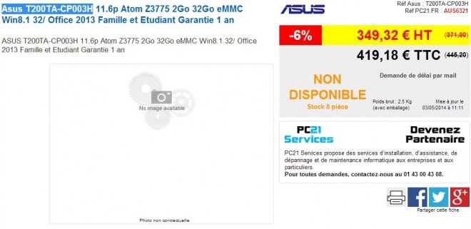 E’ apparso in rete su uno store francese, L’Asus T200, versione “potenziata” dell’ottimo Asus T100. Le caratteristiche principali di questo convertibile Windows 8.1 dovrebbero essere:
