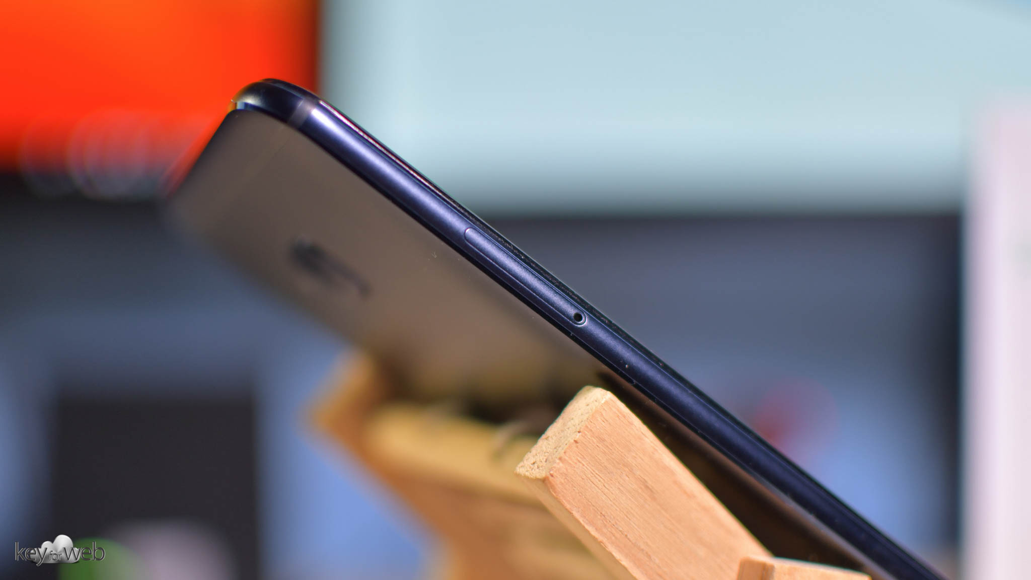Troviamo il tasto di accensione con una zigrinatura radiale ed il bilanciere del volume liscio sulla parte destra; speaker principale, microfono, jack audio da 3.5mm e porta micro-USB centrata tra due viti di assemblaggio in basso; carrellino per l’inserimento di scheda nano-SIM e micro-SD o doppia nano-SIM a sinistra mentre in alto vi è solo il secondo microfono per la soppressione dei rumori.