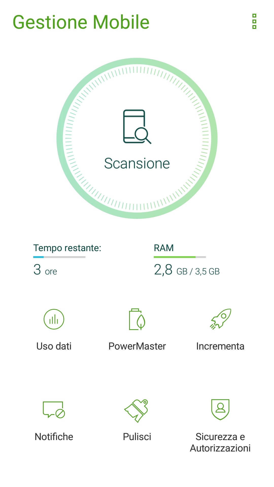 Tra le applicazioni preinstallate troviamo Gestione Mobile che consente di controllare tutte le impostazioni relative allo Smartphone e di gestire il consumo dati, di energia, delle notifiche e che permette di migliorare le prestazioni grazie alle opzioni di pulizia e incremento.