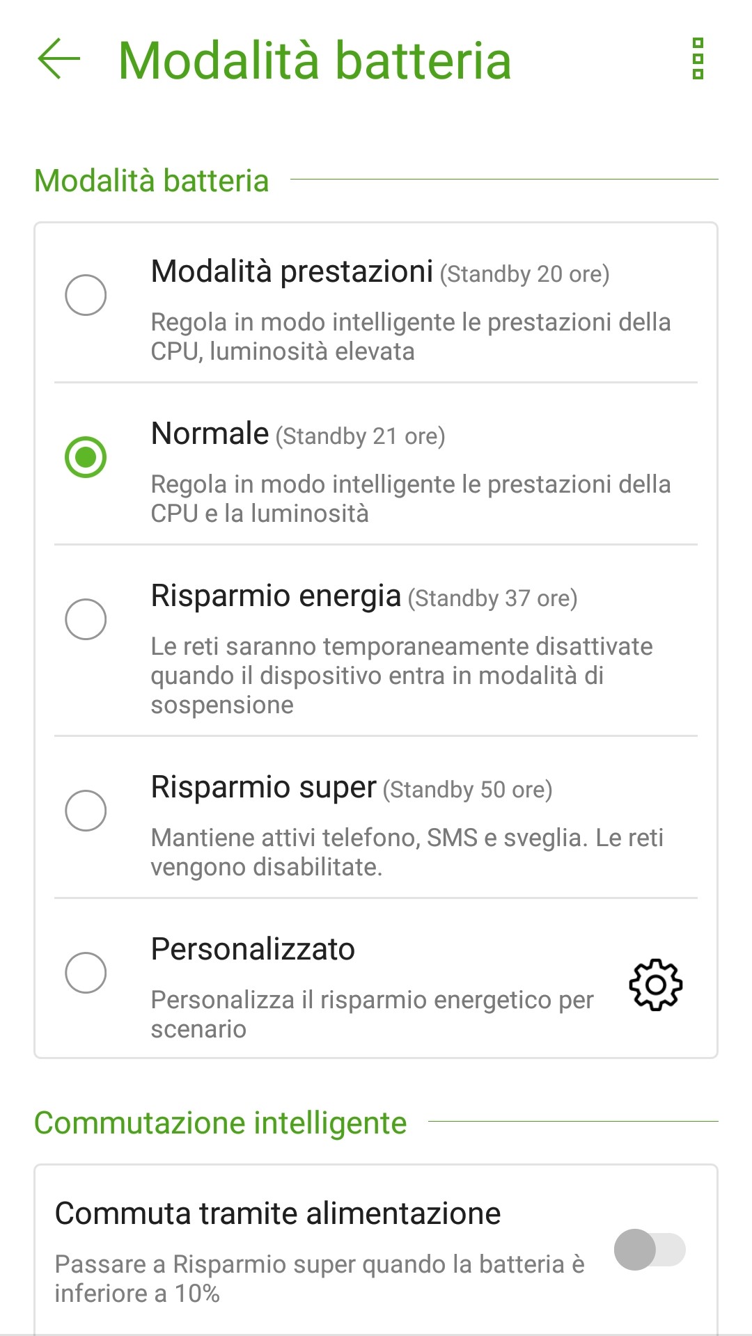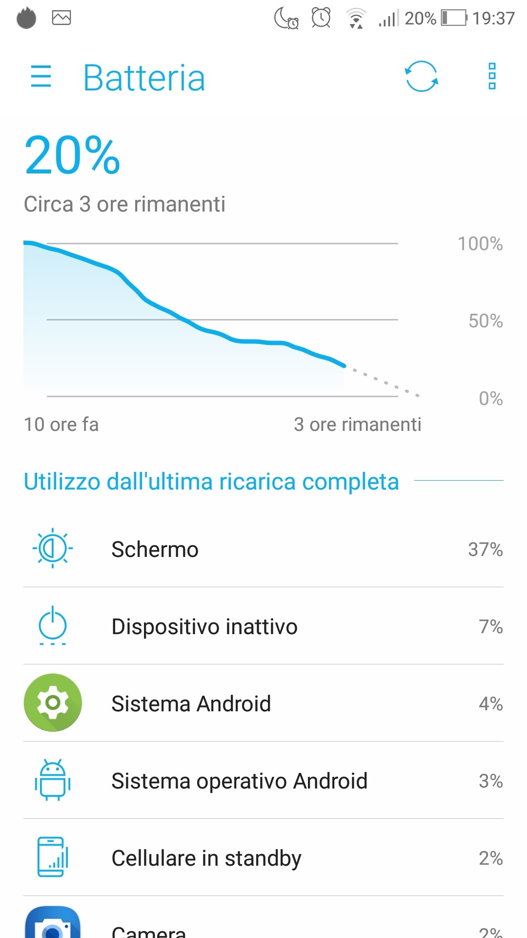 La batteria non removibile presente su questo Smartphone è da ben 3000mAh e grazie all’hardware non troppo esoso consente di arrivare a fine giornata con circa 5-6 ore di display attivo in uso misto e Wi-Fi. La scarica è uniforme e migliorabile modificando manualmente qualche opzione tramite il tool dedicato al risparmio energetico.