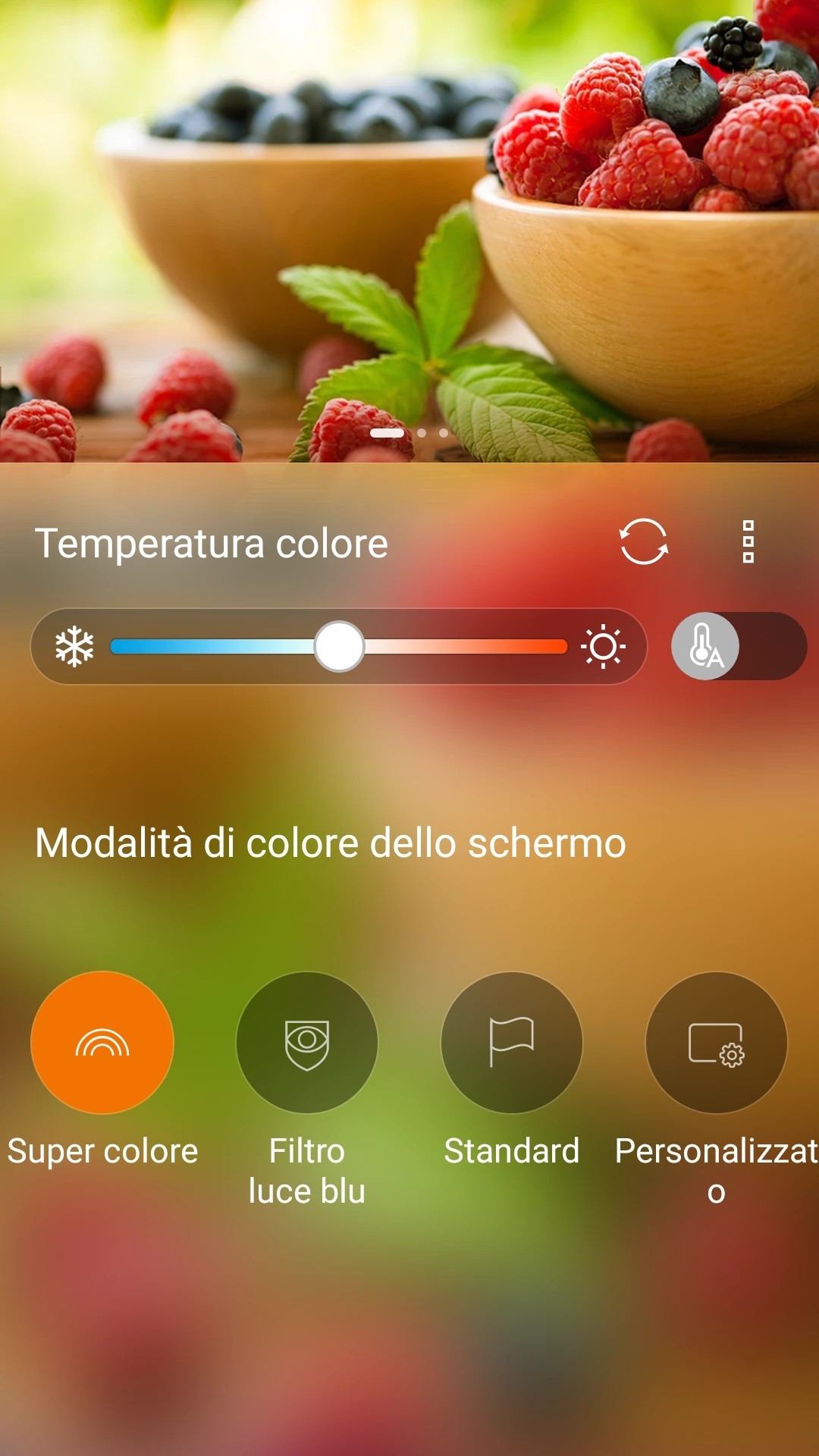 Il vetro che ricopre il pannello non è molto oleo-fobico e spesso è fastidioso soprattutto in contro sole ma almeno si pulisce abbastanza facilmente. Nelle impostazioni è possibile regolare a proprio piacimento i colori ed attivare il filtro a luce blu.