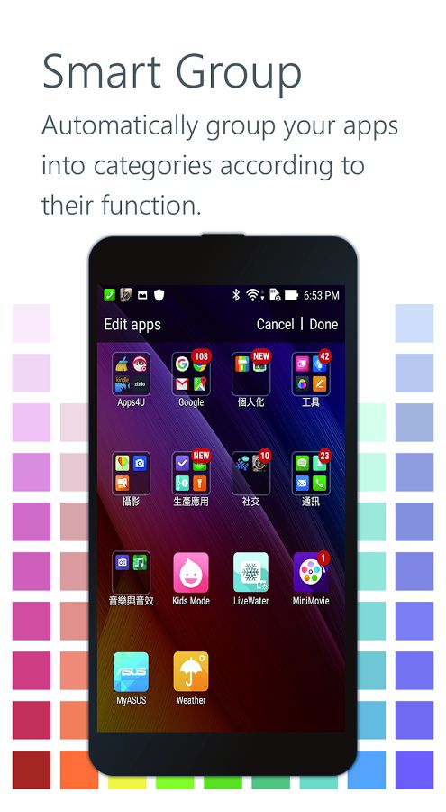 Il launcher ZenUI di Asus è decisamente uno dei più veloci in assoluto, leggero e ricco di diverse funzionalità come la possibilità di installare tanti temi differenti, una particolare gestione delle categorie attivabile tramite uno swipe, un sistema di ricerca avanzato ed anche una catalogazione delle app in funzione delle cartelle intelligenti ed automatiche.