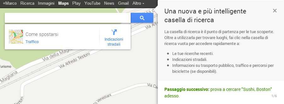 L’impatto visivo è subito da urlo, l’interfaccia è stata totalmente rivista e e risponde in maniera estremamente fluida alle richieste di zoom e di scorrimento. Al primo accesso un tour guidato ci aspetta per mostrarci tutte le nuove funzionalità a partire dalla nuova barra di ricerca multifunzione, possiamo infatti cercare strade, locali, monumenti…