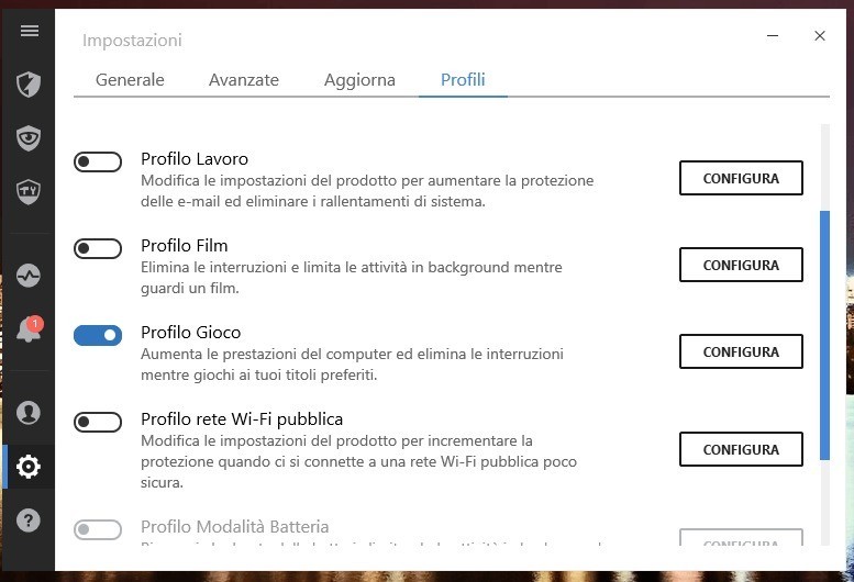 BitDefender Internet Security 2017 – modalità batteria per salvaguardarne la durata