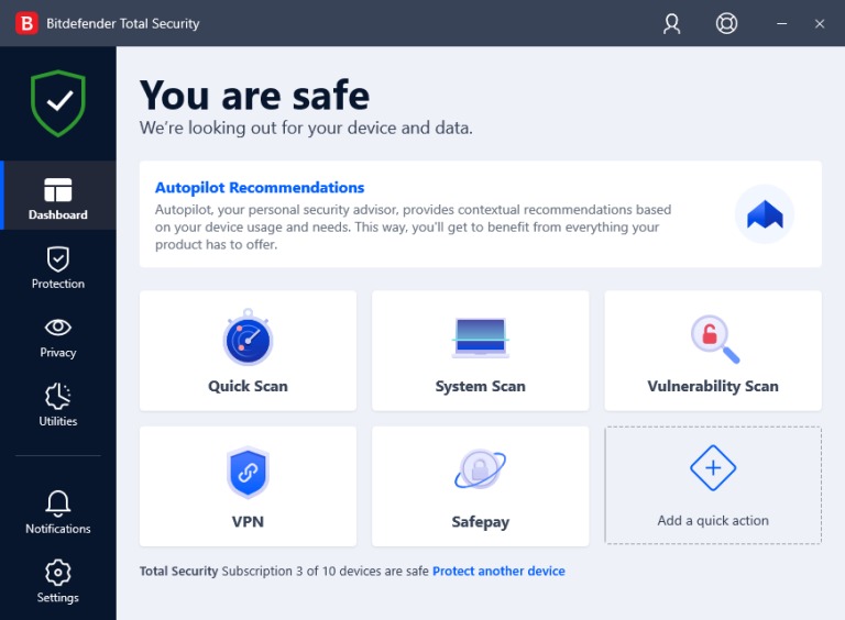 In un’epoca di forte utilizzo tecnologico, la sicurezza sul web resta tra le priorità per ogni utente oculato. Le truffe sono sempre all’ordine del giorno, e le minacce sono dietro ogni angolo. Una scarsa attenzione verso i sistemi di sicurezza può risultare, il più delle volte, in gravi violazioni della privacy dell’utente oltre che a problemi talvolta irrisolvibili se non attraverso la consultazione con un esperto di cybersecurity: ed è qui che entra in gioco Bitdefender Total Security, un performante software di sicurezza che offre protezione non solo contro i virus più comuni, ma che estende il suo dominio anche ad altre importantissime funzioni. Bitdefender è un antivirus che, attraverso un’interfaccia utente piuttosto intuitiva, offre diverse soluzioni ai sempre più frequenti problemi. Volendo offrire una sintesi o una breve panoramica sulle caratteristiche di Bitdefender, elenchiamo:
