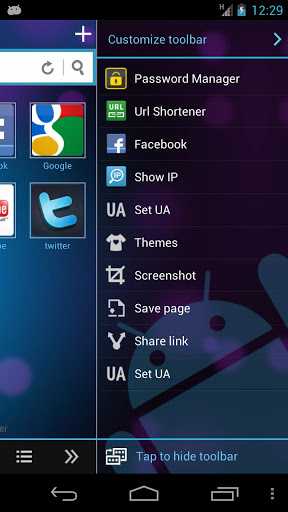 Il programma in oggetto, oltre ad essere interamente in italiano, offre oltre alla velocità, una gamma di funzionalità e di personalizzazioni davvero poche volte riscontrate in altri prodotti del genere. Offre la compatibilità con Flash Player e anche utilizzando la connessione 2G è veramente veloce. Personalmente lo ho trovato addirittura migliore del browser stock che ho ( o forse sarebbe il caso di dire avevo ) sia sul mio GNex sia sul Galaxy S2 e non ho mai avuto, pur usandolo in maniera massiccia ormai da 3 giorni pieni in cui lo ho davvero stressato per bene un solo crash o un lag degno di nota.