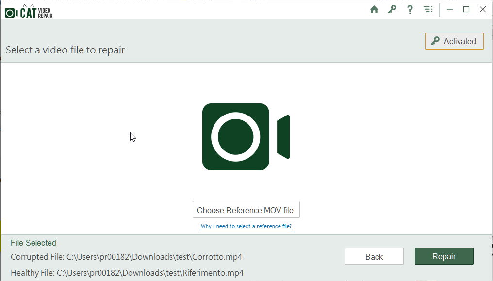 Dopo aver inserito in CAT software riparazione video il file MP4 danneggiato ed un file di riferimento registrato sempre dallo stesso dispositivo, abbiamo provato la bontà del software che in circa 15 minuti ci ha fornito una copia, integra e funzionante del file danneggiato!