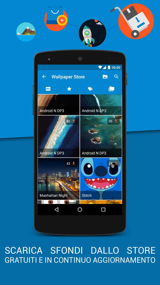 All’interno dell’app è presente uno Store, continuamente aggiornato dallo sviluppatore, dove poter scaricare nuovi sfondi gratuitamente.