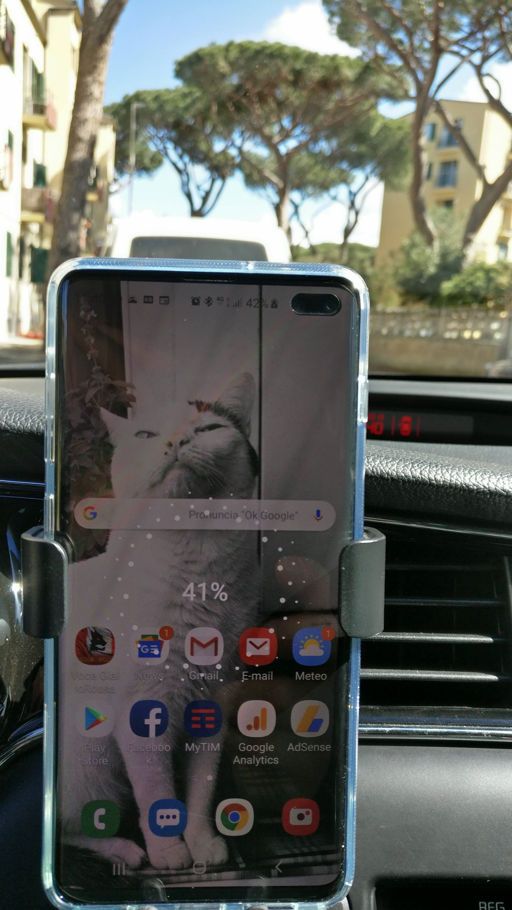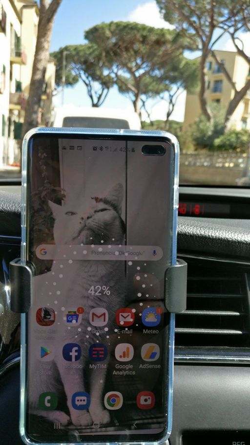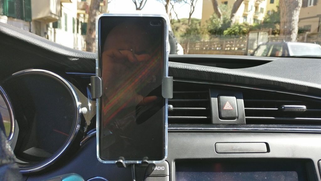 Il supporto è ben congegnato, ha una piccola aletta sulla pinza da presa ricoperta di silicone, che serve a “incastrarlo” in modo da renderlo e la molla della pinza è abbastanza forte da tenerlo saldo in ogni condizione di guida (test sulle buche di Roma, ampiamente superato). La parte anteriore funziona a pressione: quando si inserisce lo smartphone il supporto posteriore sente la sua presenza e scende stringendo di conseguenza le astette laterali che terranno fermo il telefono. Anche questa parte è antigraffio ed è ricoperta di sottile silicone. Il giunto è snodabile a sfera con rotazione a 360° e ti consentirà angoli di visione flessibili durante la guida, dandoti la possibilità di caricare verticalmente o orizzontalmente per l’uso ideale del sistema di riconoscimento del viso.