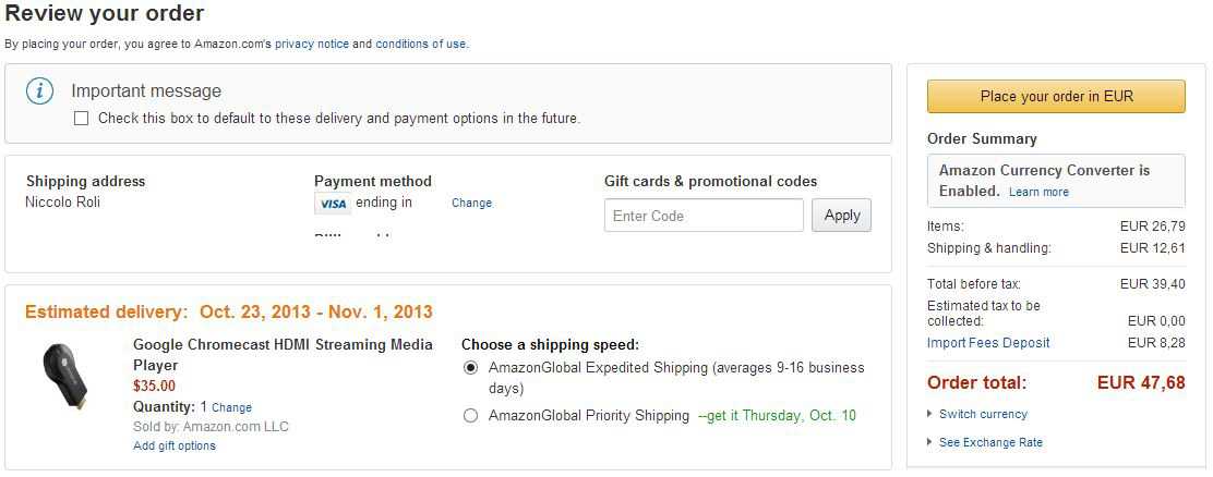 Ricordiamo che in Italia ChromeCast è molto limitato, in quanto non tutti i servizi integrati in esso sono disponibili nel nostro paese, tuttavia il prezzo inferiore ai 50€ con spedizione e prezzi di dogana inclusi potrebbero non spaventare l’acquirente.