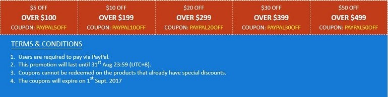 Da oggi e fino al 31 Agosto parte l’eccezionale iniziativa di Chuwi su Geekbuying che vi regala fino a 50 dollari di sconto a fronte di un acquisto utilizzando come metodo di pagamento il vostro account PayPal.