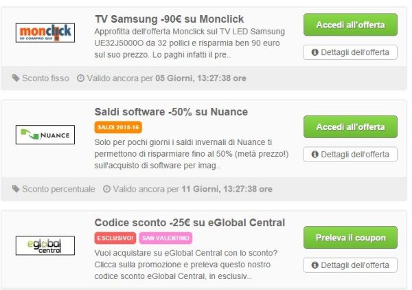Niente di più facile: basterà cliccare sul seguente badge per accedere alla pagina delle offerte più vantaggiose del momento, ed entrare in un mondo di sconti e coupon imperdibili.
